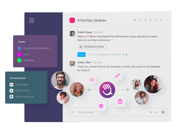 El trabajo en equipo en DevOps se basa en la colaboración, y Uhuu! la promueve a través de la integración con las herramientas y sistemas utilizados por tu equipo.